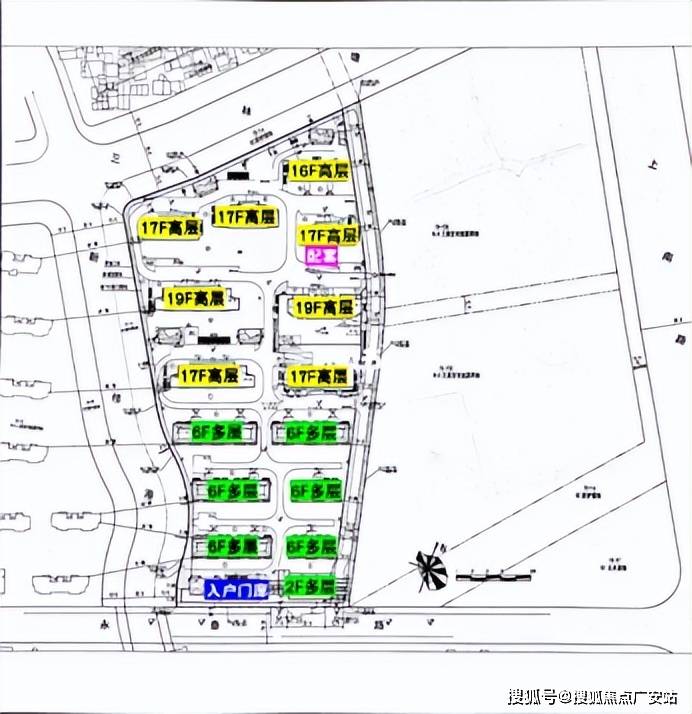 根据设计方案显示:项目拟建6栋6F多层住宅、6栋16-18F高层住宅、1栋17F保障房、1栋17F自持租赁住房以及若干社区配套用房!土地面积44835.6㎡,总建筑面积89671.2㎡,容积率2。